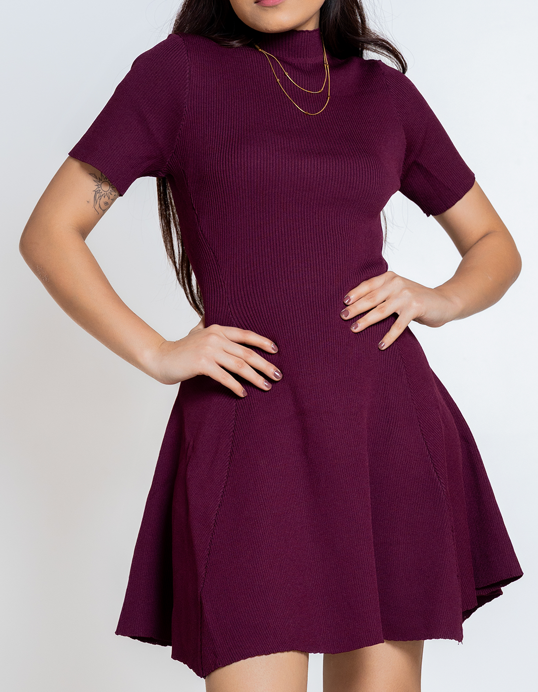 High Neck Fit And Flared Bell Sleeve Mini Sweater Dress