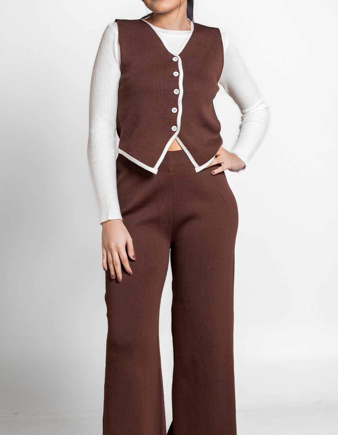 V-Neck Contrast Collar Knitted Winter Co-ord Set